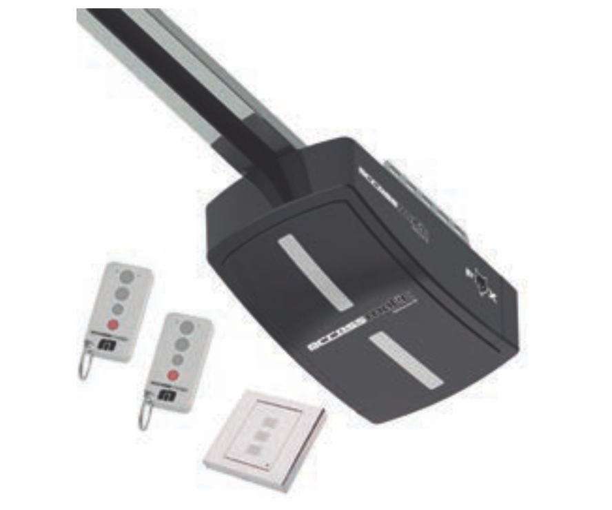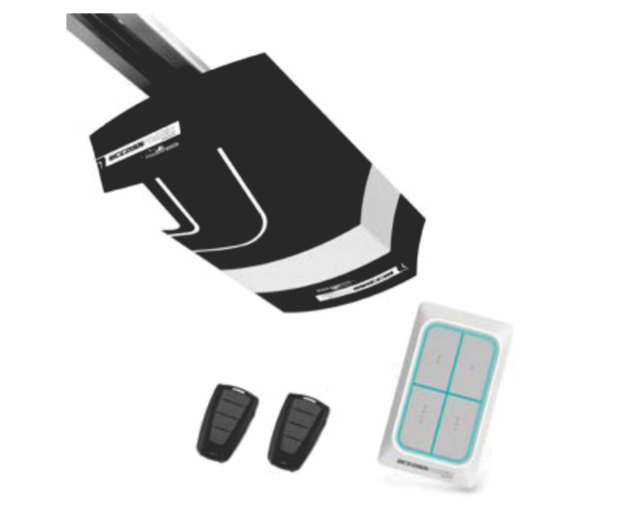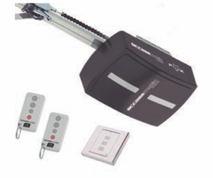 MOTOR DE GARAJE ACCESSMATIC SCORPION 901 DE 1/2 HP, MOTOR DE 24V RIEL EN C DE UNA SOLA PIEZA DE 3 MTS CON CADENA. ACCESSSCREEN. PANTALLA L.C.D. PARA UNA FÁCIL PROGRAMACIÓN INCLUYE 2 CONTROLES DE 3 CANALES, PULSADOR DE PARED WIRELESS. 110V.