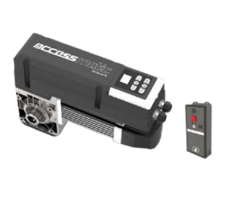 MOTOR DE GARAJE ACCESSMATIC SHARK 1000, MOTOR DE 3/4HP DE FUERZA, 24V USO INTENSIVO COMPLETAMENTE SILENCIOSO, 12 MT DE RECORRIDO AGREGANDOLE “ACCESSRAIL” INCLUYE 2 CONTROLES DE 2 BOTONES DE 433MHZ, CARGADOR DE BATERÍA INCORPORADO, PULSADOR INALÁMBRICO DE 3 FUNCIONES. 110V